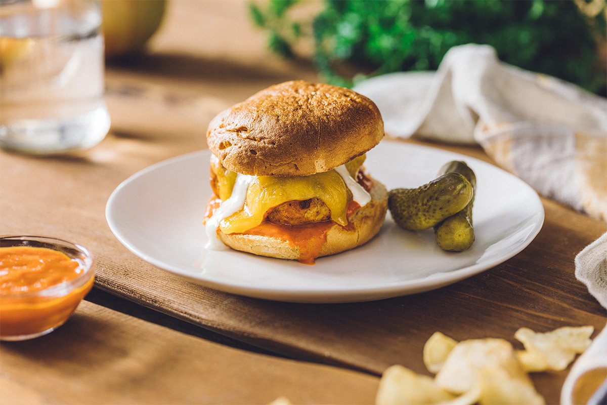 Hot, saucy buffalo chicken meatballs on our Burger Buns with melted cheddar and blue cheese dressing.
