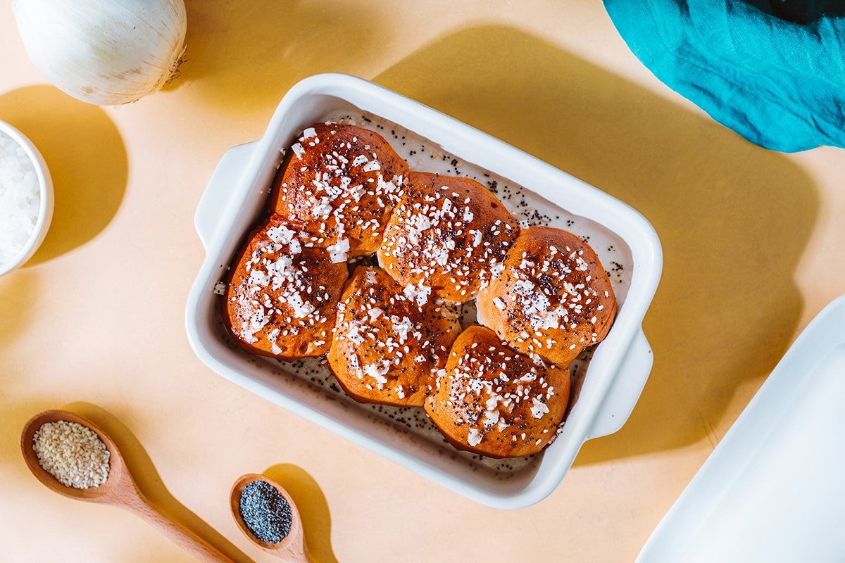 Buttery Onion and Seed Hawaiian Rolls