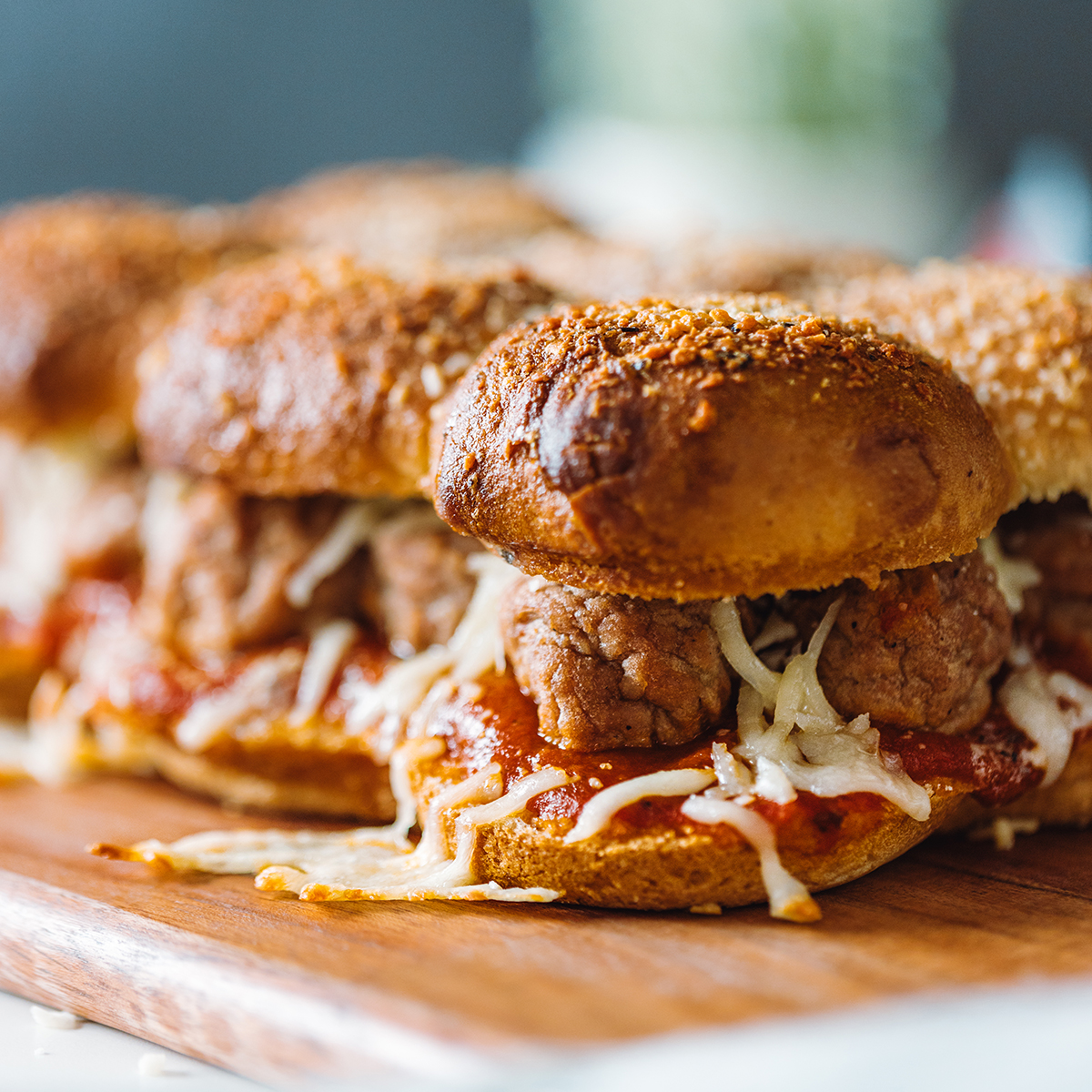 Cheesy Meatball Sliders on Garlic Hawaiian Rolls