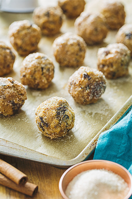 Warm donut holes made with Cinnamon Raisin bread and dusted to perfection with cinnamon sugar.