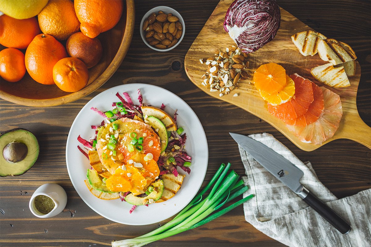 Our soft, chewy bagels are grilled and tossed in lime vinaigrette with avocado, citrus fruits and radicchio.
