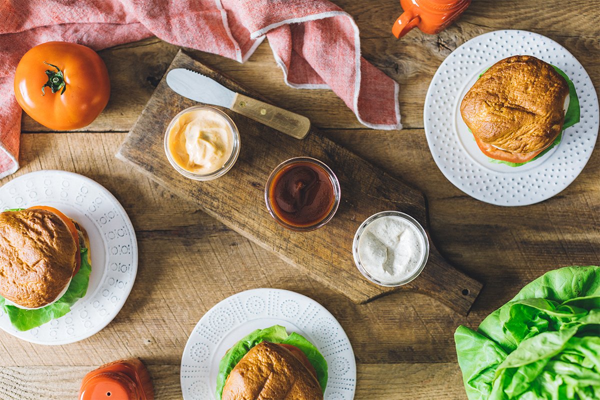 Customize your burger at the homemade sauce bar with old fashioned "special sauce," horseradish sauce, and homemade BBQ sauce; serve in cute jars.