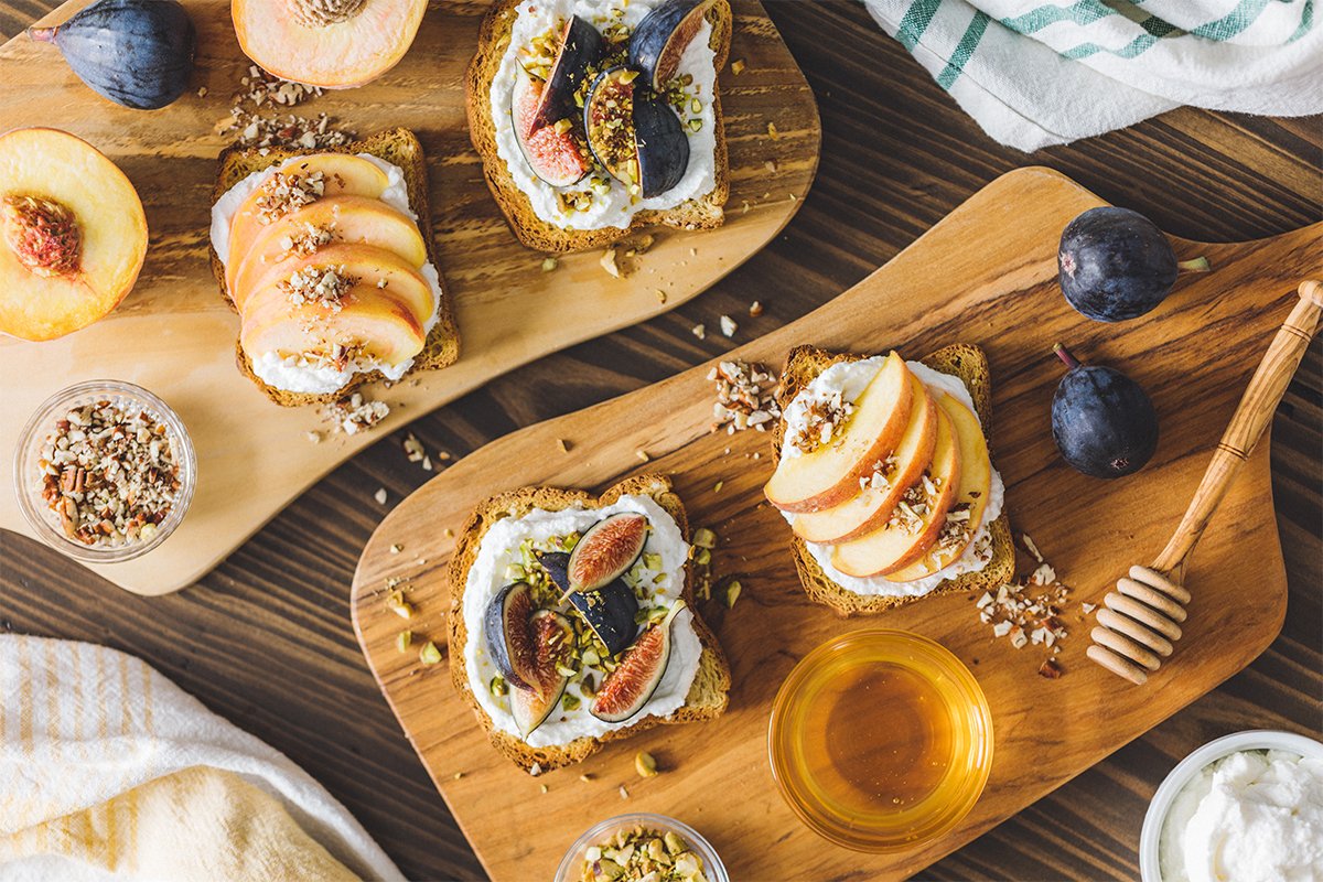 Ricotta on Toast Two ways with Peaches and Figs