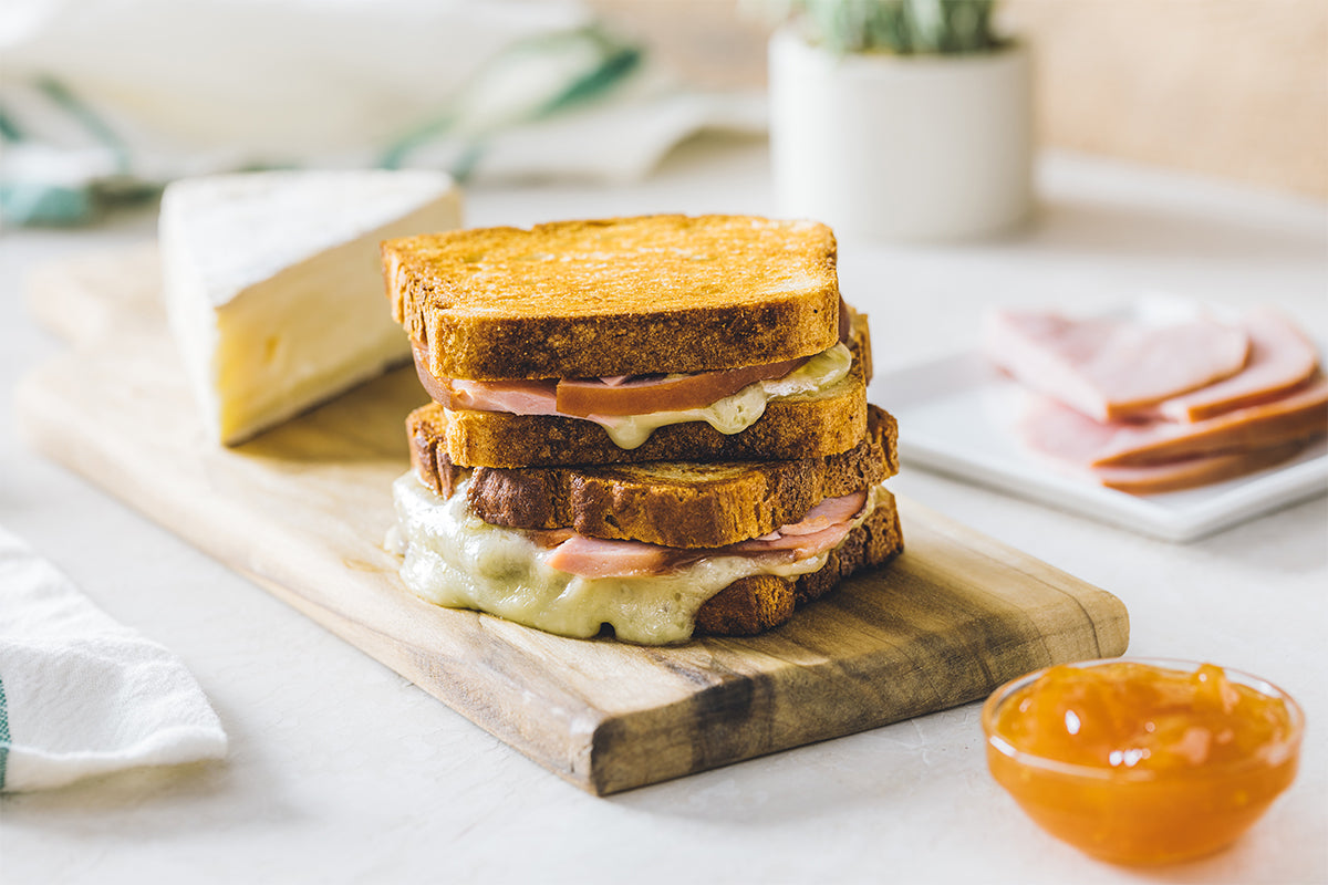 Sweet Hawaiian Grilled Cheese with Holiday Ham and Apricot Jam