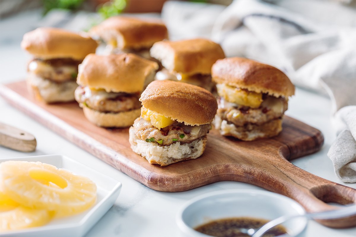 Teriyaki Turkey Burgers with Pineapple and Swiss