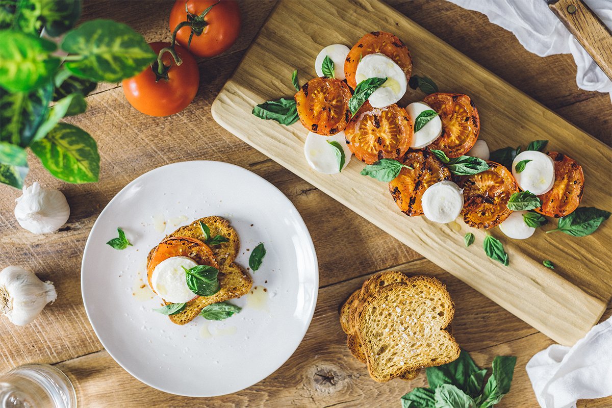 Toast with Grilled Tomatoes and Mozzarella
