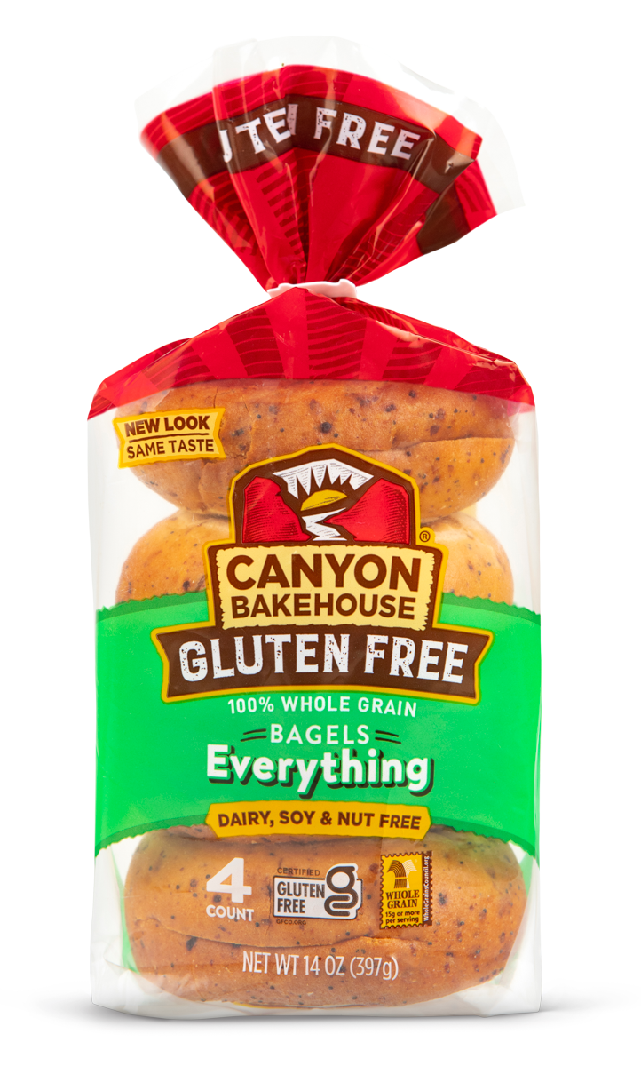 You deserve EVERYTHING when it comes to delicious Canyon Bakehouse® gluten-free Everything Bagels. Made with a savory blend of garlic, onion, poppy and sunflower seeds, our Everything Bagels will transport you to breakfast bliss in a New York minute. Certified Gluten-Free, these bagels are also free from dairy, nuts and soy and baked with whole grains.Couldn't load pickup availability
