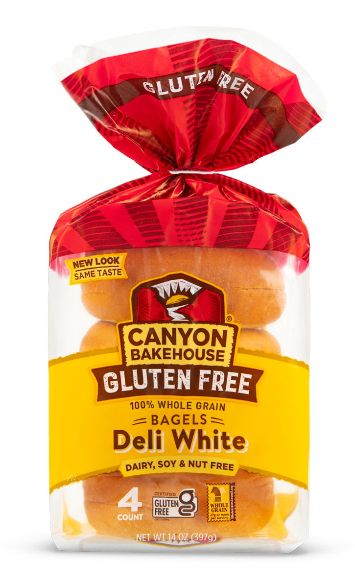 Brooklyn, San Francisco, Chicago – now you can get classic deli-style bagels you love wherever you are. Enjoy Canyon Bakehouse® gluten-free Deli White Bagels toasted and topped with cream cheese or build an egg and cheese sandwich! Certified Gluten-Free, these bagels are also free from dairy, nuts and soy and baked with whole grains.Couldn't load pickup availability
