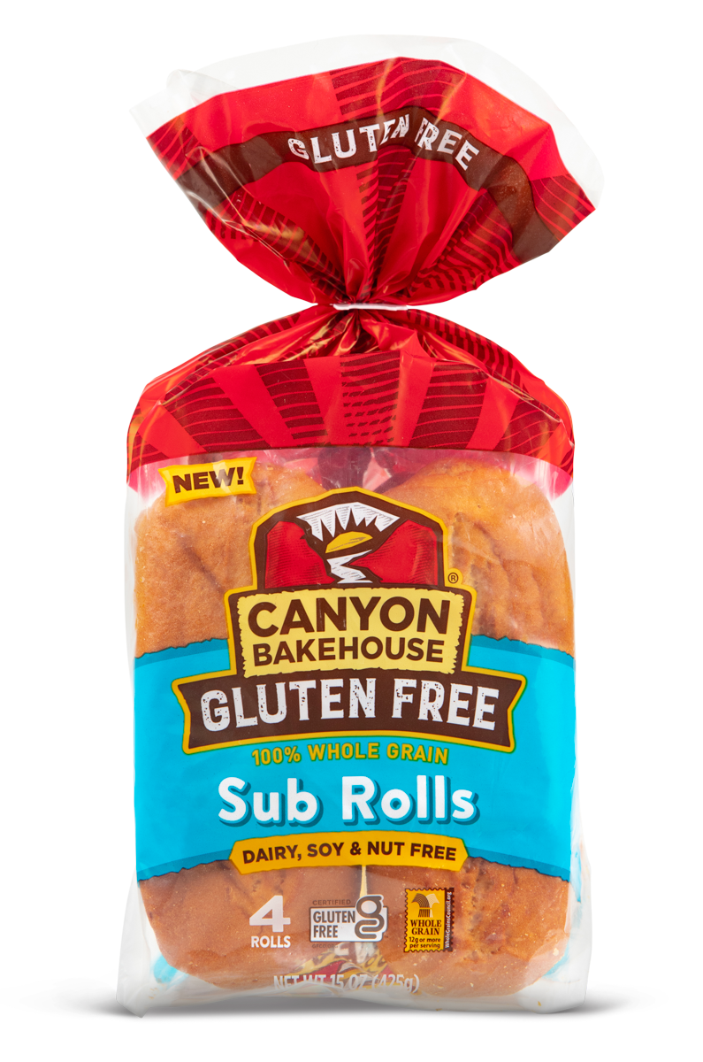 Canyon Bakehouse® artisan-inspired gluten-free Sub Rolls have a crisp outer crust with a soft, pillowy texture that’s ready to take the heat as a toasted sub or piled high with your deli creations! Certified Gluten-Free, these rolls are also free from dairy, nuts and soy and baked with whole grains.
